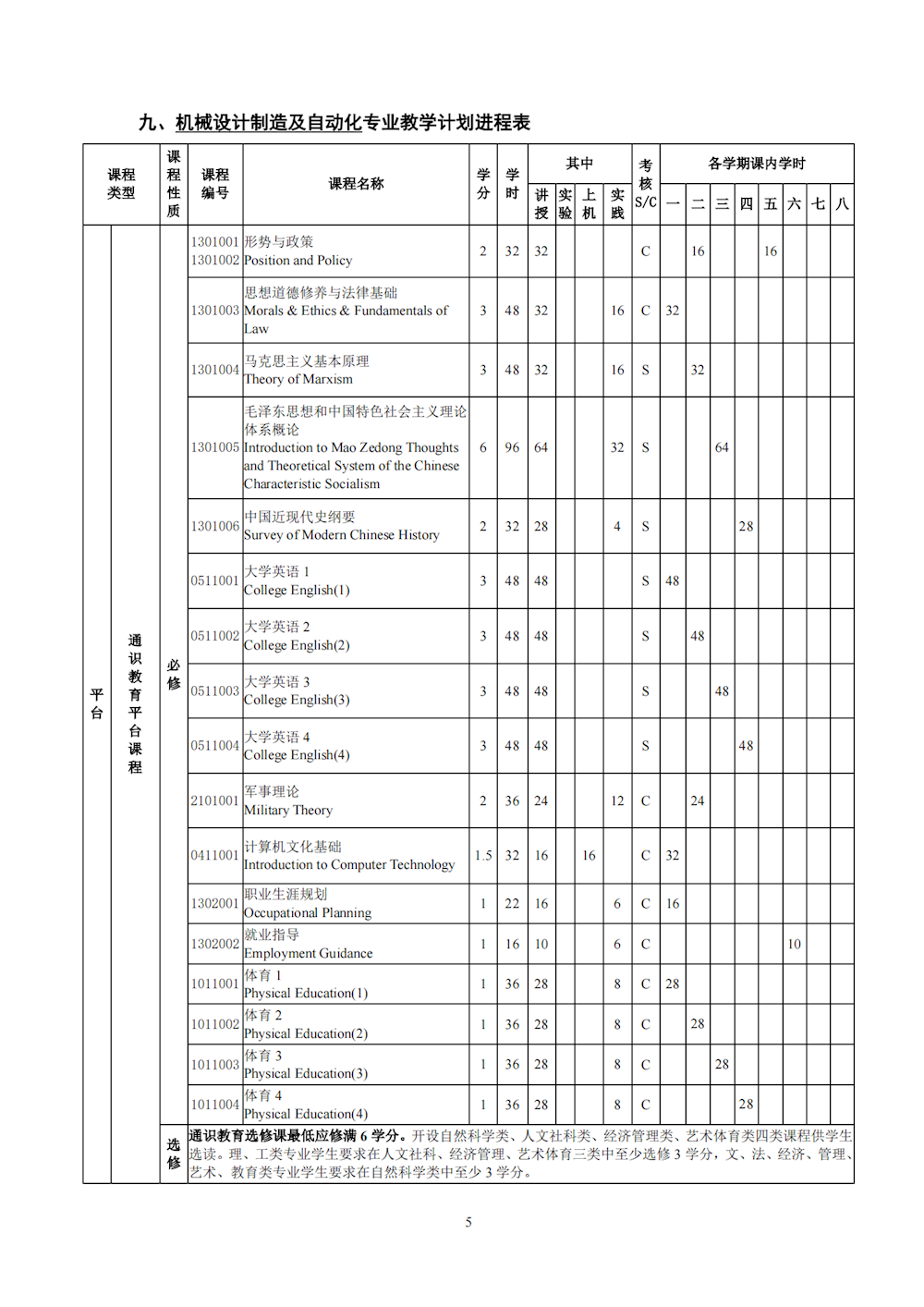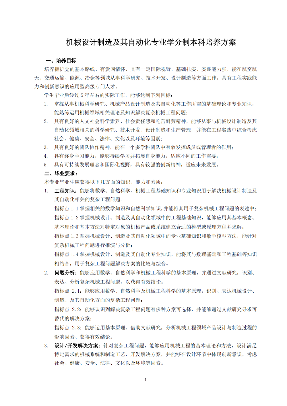 机械设计制造及其自动化专业2017版本科人才培养方案 来源: 发布时间:2017-06-20 10:10:56 浏览次数: 次 【字体:小 大】 机械设计制造及其自动化专业2017版本科人才培养方案.pdf 责任编辑:袁源平1 【打印正文】