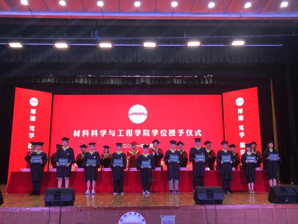 关于授予2021届毕业生学位的决定》,授予卫陈龙等8名博士研究生博士学位、肖广顺等144名硕士研究生硕士学位、余秋君等305名本科生学士学位。随后,主席台领导、老师为获得学位的全体学生颁发学位证书、扶正流苏,并与毕业生合影留念。
