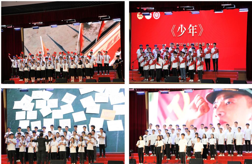 在“不负韶华”篇,同学们用《万疆》《错位时空》《夜空最亮的星》《明天会更好》唱出了同学们“请党放心,强国有我”的青春誓言,表达同学们“奋斗是青春最靓丽的底色”的昂扬斗志。