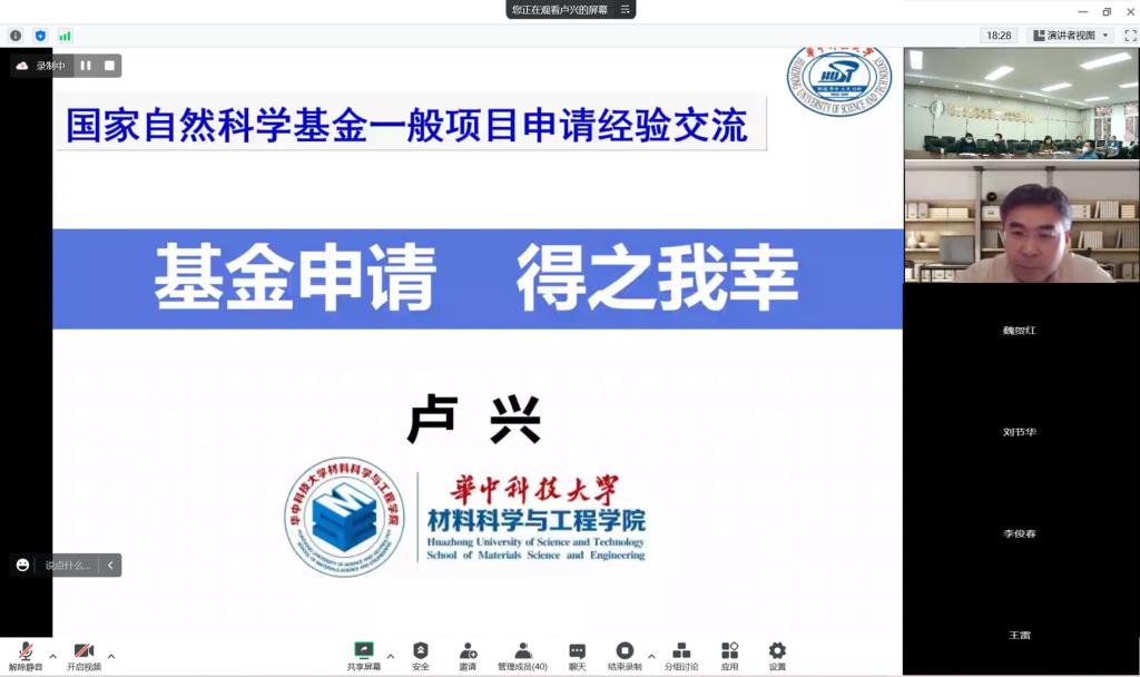 在提问与答疑环节,卢兴教授与预申报2023年度国家自然基金项目的教师进行了互动交流,针对大家提出的问题做出了详细的解答和指导。