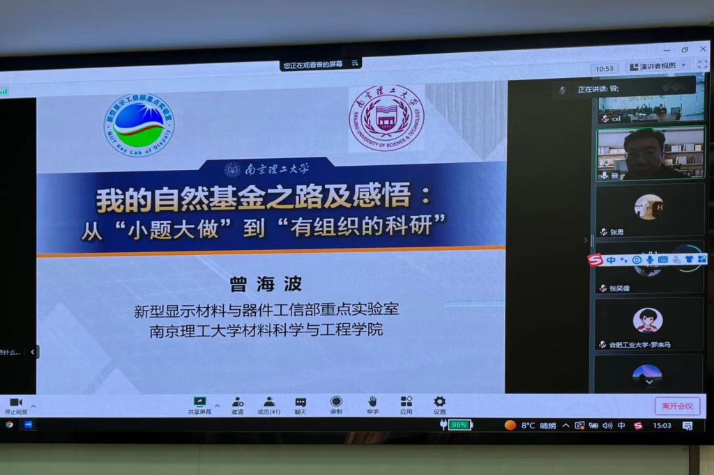 曾海波教授长期担任国家自然科学基金评审专家,多次获国家重点基金及各类自然科学基金的资助,他结合自己丰富的评审经验,详细介绍了各类国家自然科学基金资助方式、申请条件与评审流程。随后,曾海波教授分结合实例重点讲解了国家自然科学青年基金和面上基金的如何恰当选题、构思立项依据、撰写研究内容等方面的内容,强调申请人要注重研究基础的积累和研究内容的创新性,根据项目特点和自身优势谨慎选择项目类别,拓宽科研工作思路,多交流、多积累、多沉淀,努力提高基金申报书的撰写质量。
