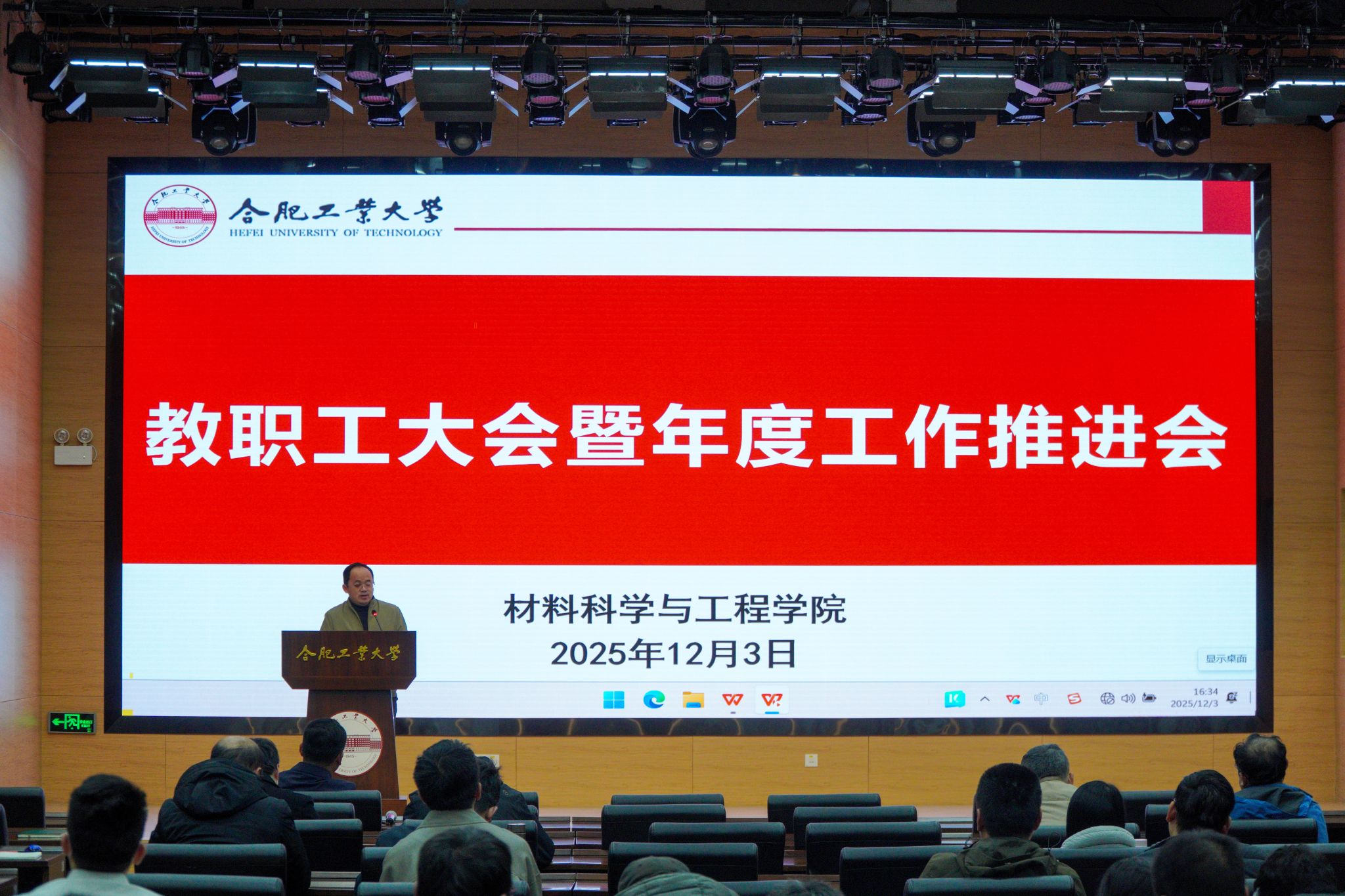 在工程管理与智能制造研究中心第五会议室召开全院教职工大会。院党委书记武国剑主持会议,学院全体教职工参加会议。