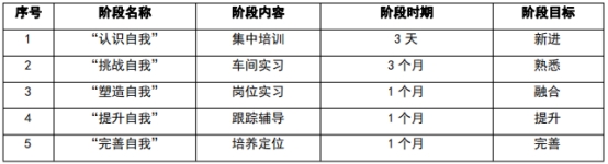 流程:“认识自我”——“挑战自我”——“塑造自我”——“提升自我”——“完善自我”