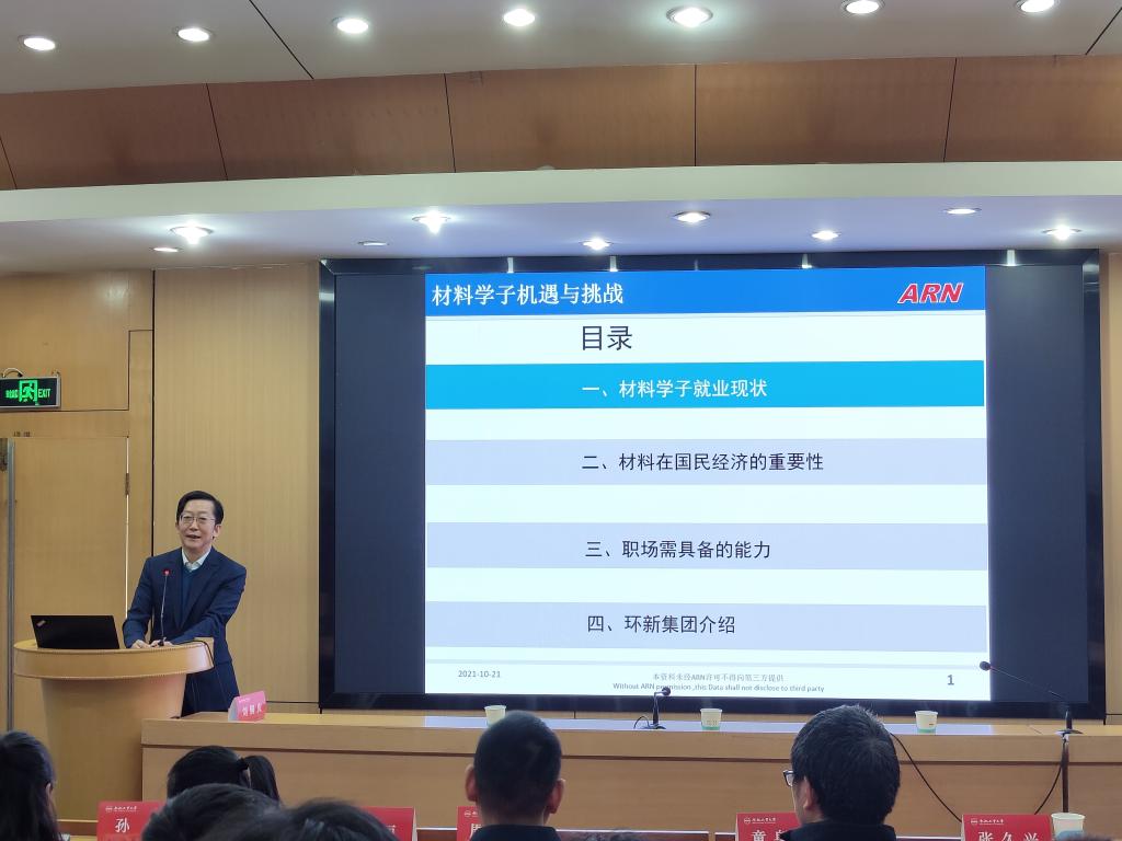 颁奖仪式结束后,刘铜庆以“材料学子机遇与挑战”为题,用翔实的数据和丰富的图表阐述了材料学子就业现状,深刻剖析了当前材料行业及材料学子当前存在的问题和面临的机遇与挑战,并强调了材料在国民经济中的重要地位。他还分享了自身职业生涯发展的心得体会,表达了对禁漫天堂