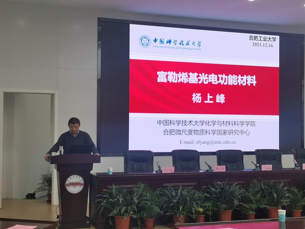 举办研究生学术交流年系列报告会,国家杰出青年基金获得者、英国皇家化学会会士、中国科学技术大学杨上峰教授应邀,为师生带来一场题为“富勒烯基光电功能材料”的学术报告,学院党委书记吕珺主持会议。