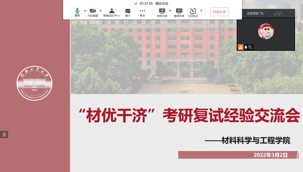 分别于2022年3月2日、4日晚组织召开“材优干济”考研复试经验交流会、求职经验交流会,学院各年级同学均能根据个人需求积极参与。