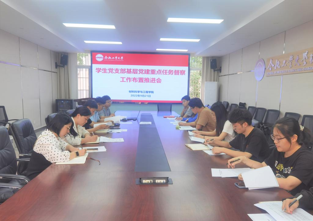 在材料楼综合服务中心210召开学生党支部基层党建重点任务督察工作布置推进会。学院党委相关负责人、各年级辅导员、本科生和研究生全体党支部书记参加本次会议。