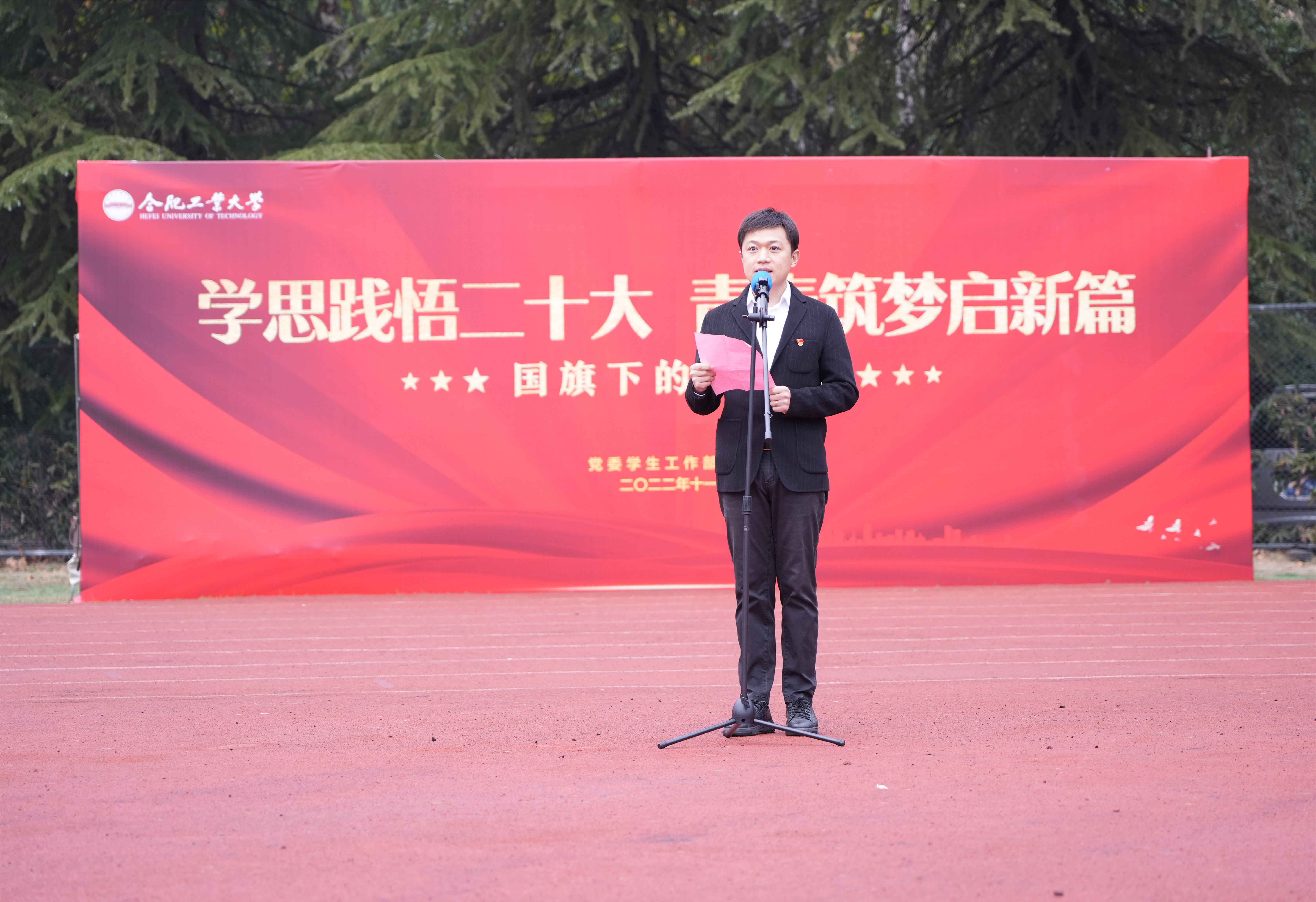 在屯溪路校区举行了以“学思践悟二十大 青春筑梦启新篇”为主题的升旗仪式暨国旗下的思政课主题教育活动。学院相关负责人、2019级、2020级全体本科生和研究生参加活动。