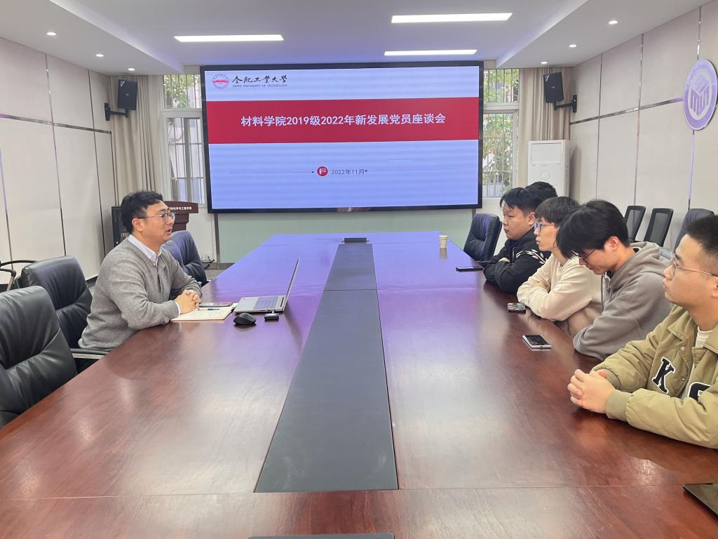 于学院综合服务中心210会议室组织召开秋季新发展党员座谈会。会议由2019级辅导员葛海涛主持,新发展的8位预备党员同学参加。