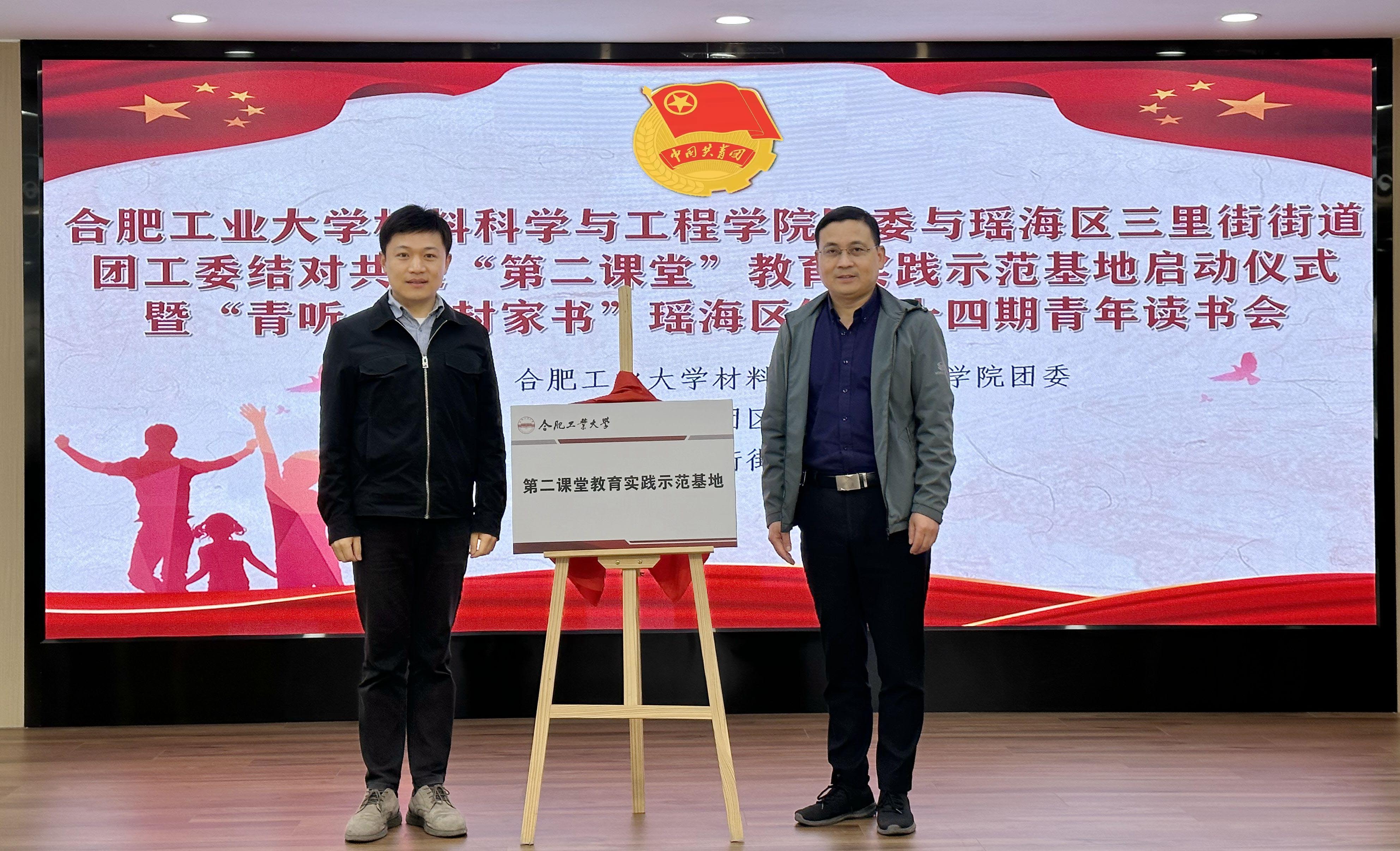 4月26日上午,禁漫天堂 和瑶海区三里街街道团工委开展“第二课堂”教育实践示范基地结对共建仪式暨青年读书会活动举办。瑶海团区委书记刘会启、三里街街道党工委副书记、办事处主任姜得明、街道党工委副书记王媛媛、各街镇开发区团工委、区直各单位团干、团员,辖区青年团员代表及非公企业代表以及禁漫天堂 党委副书记、纪委书记朱峰和学院的师生代表等40余人共同参加活动。