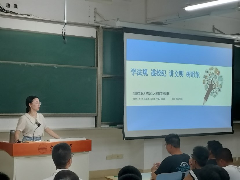 在翡翠湖校区一教102举办了校规校纪主题教育宣讲会。学院2023级辅导员、全体新生参会。