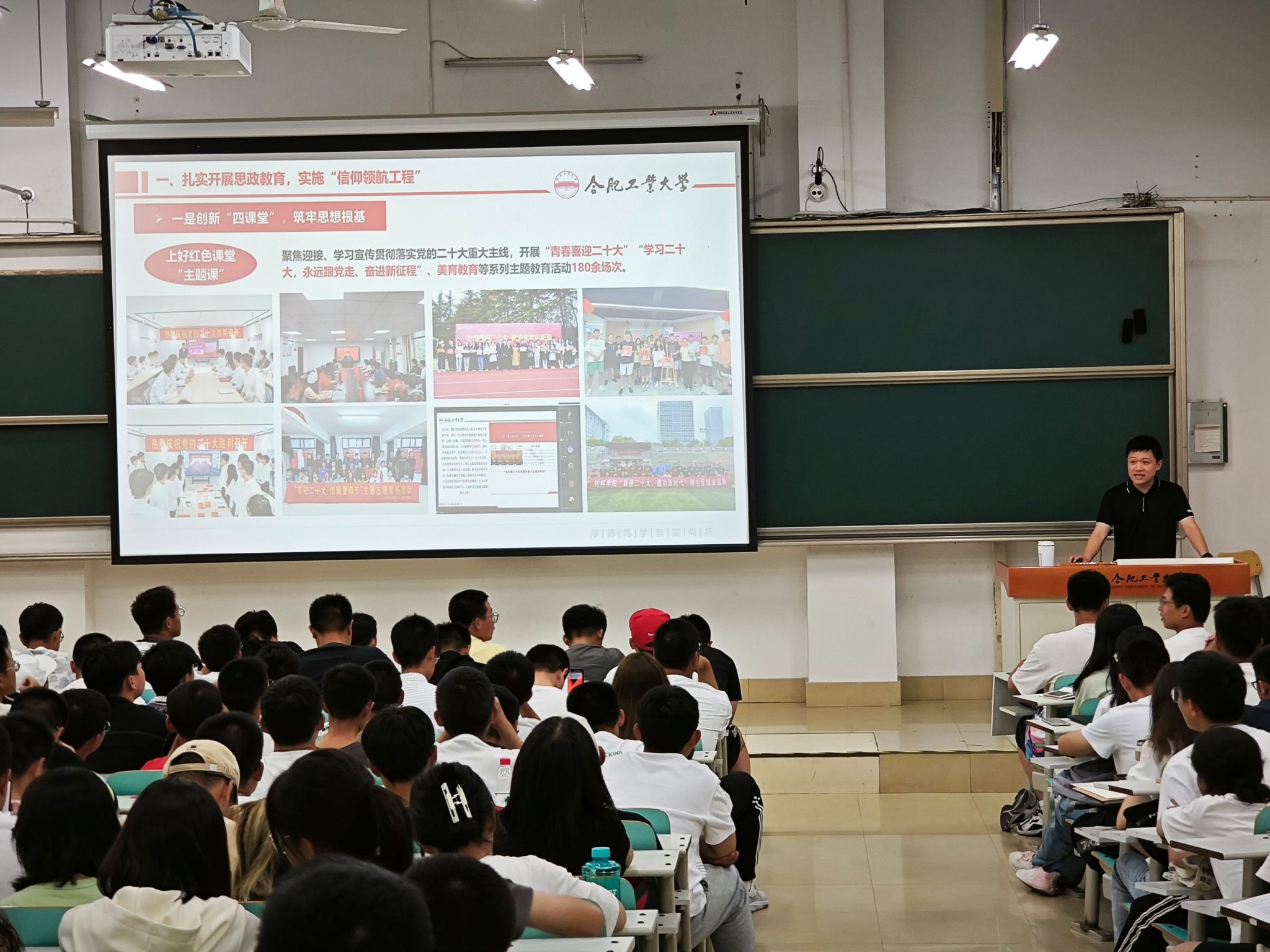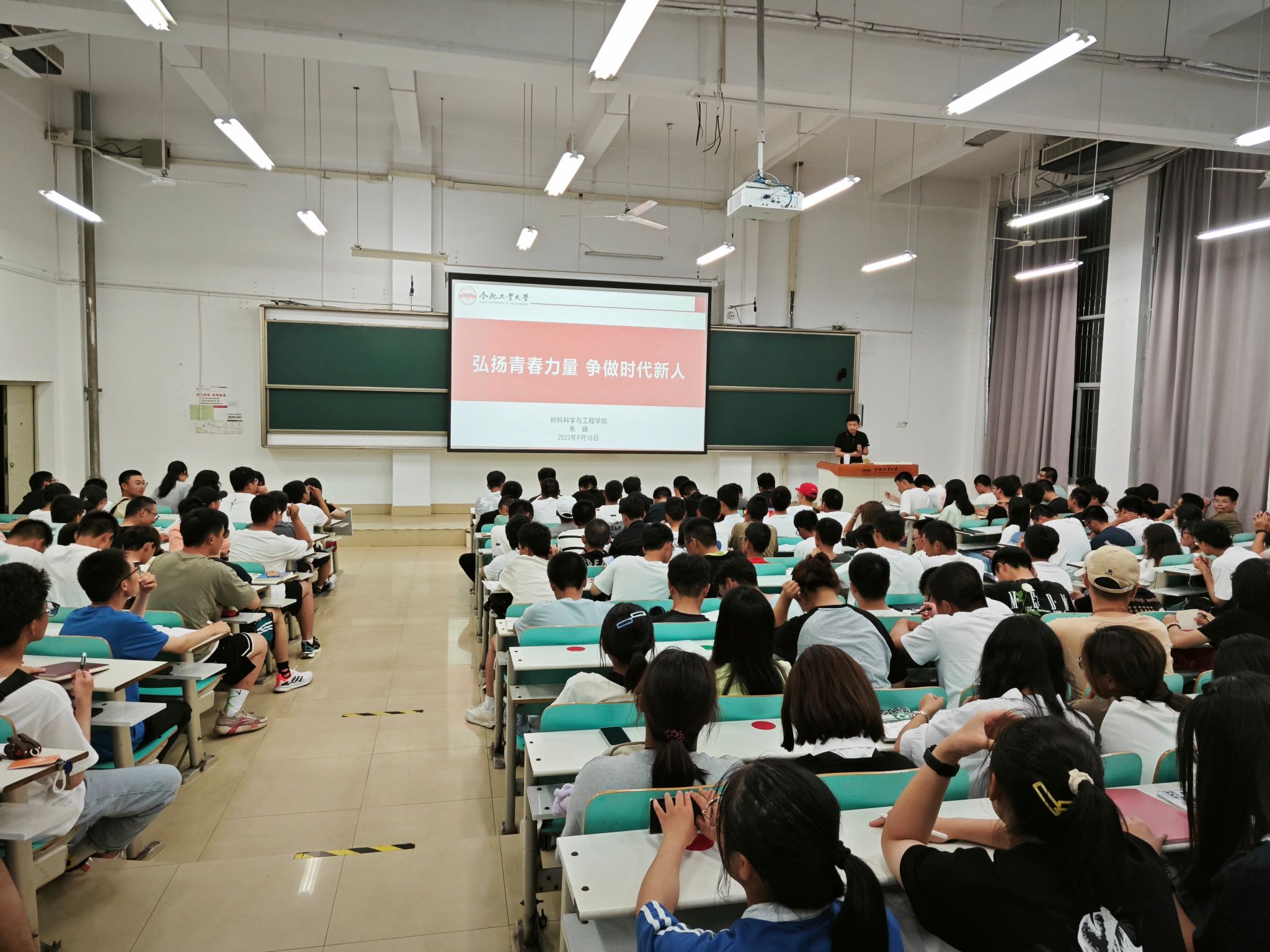 9月18晚,禁漫天堂 于一教102教室开展“弘扬青春力量,争做时代新人”新生理想信念教育讲座,学院党委副书记兼纪委书记朱峰为全体2023级同学作报告。