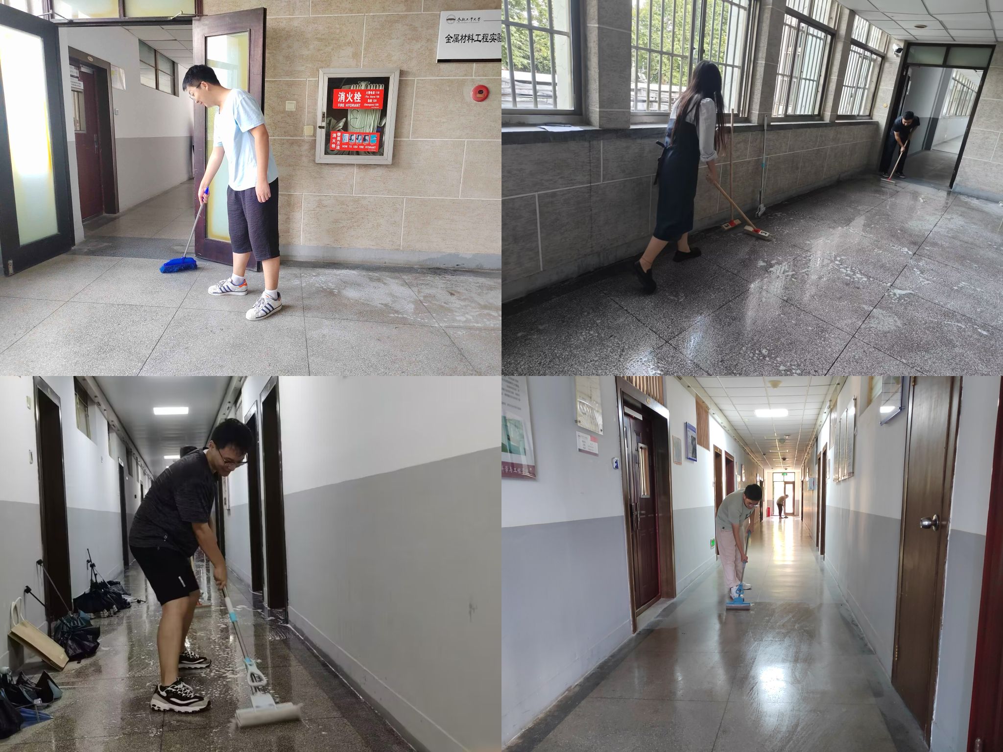 相关负责老师制定了详细的清洁方案,并对全体2023级硕士研究生、博士研究生进行分组安排,将240名学生分为12个组别。其中,所清洁区域包括材料楼主楼2至9楼过道及电梯厅、所有楼梯,还有南北附楼相应的过道和楼梯。