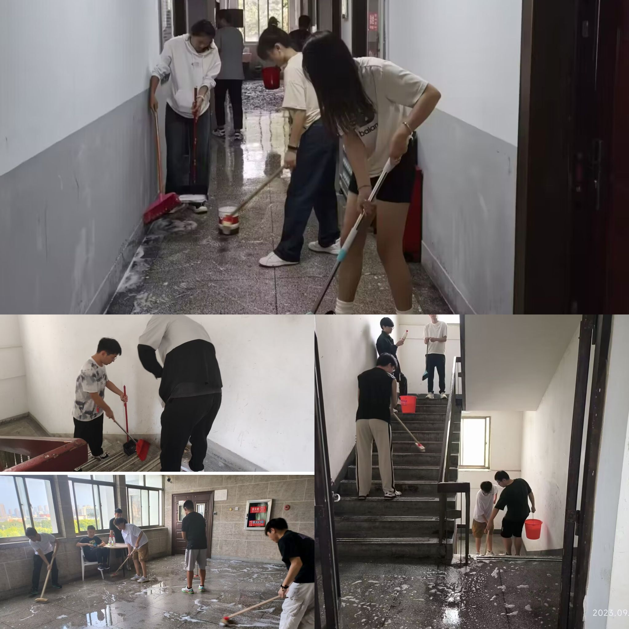 组织全体2023级研究生开展劳动教育,集体打扫材料楼卫生活动。