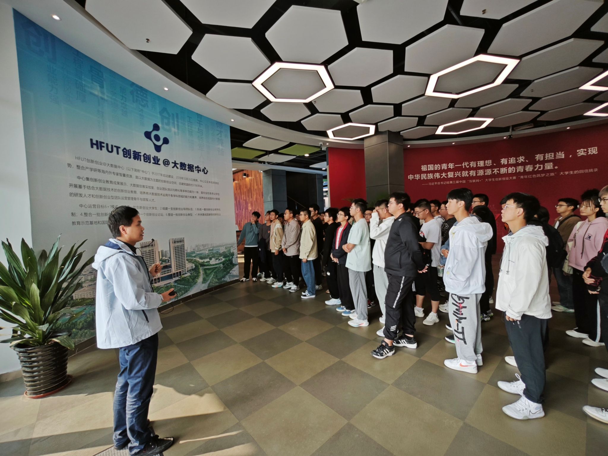 大数据中心基本情况,参观了创新创业教育成果展示大厅。同学们积极参与,学习了诸多创新创业优秀团队的新鲜经验,了解到了诸如“互联网+”、“挑战杯大学生创业大赛”“全国大学生金相技能大赛”等国家级竞赛的实际案例,为同学们接下来参与竞赛、项目,解决复杂学科竞赛问题等提供了思路,有效激发了同学们对创新创业的积极性。
