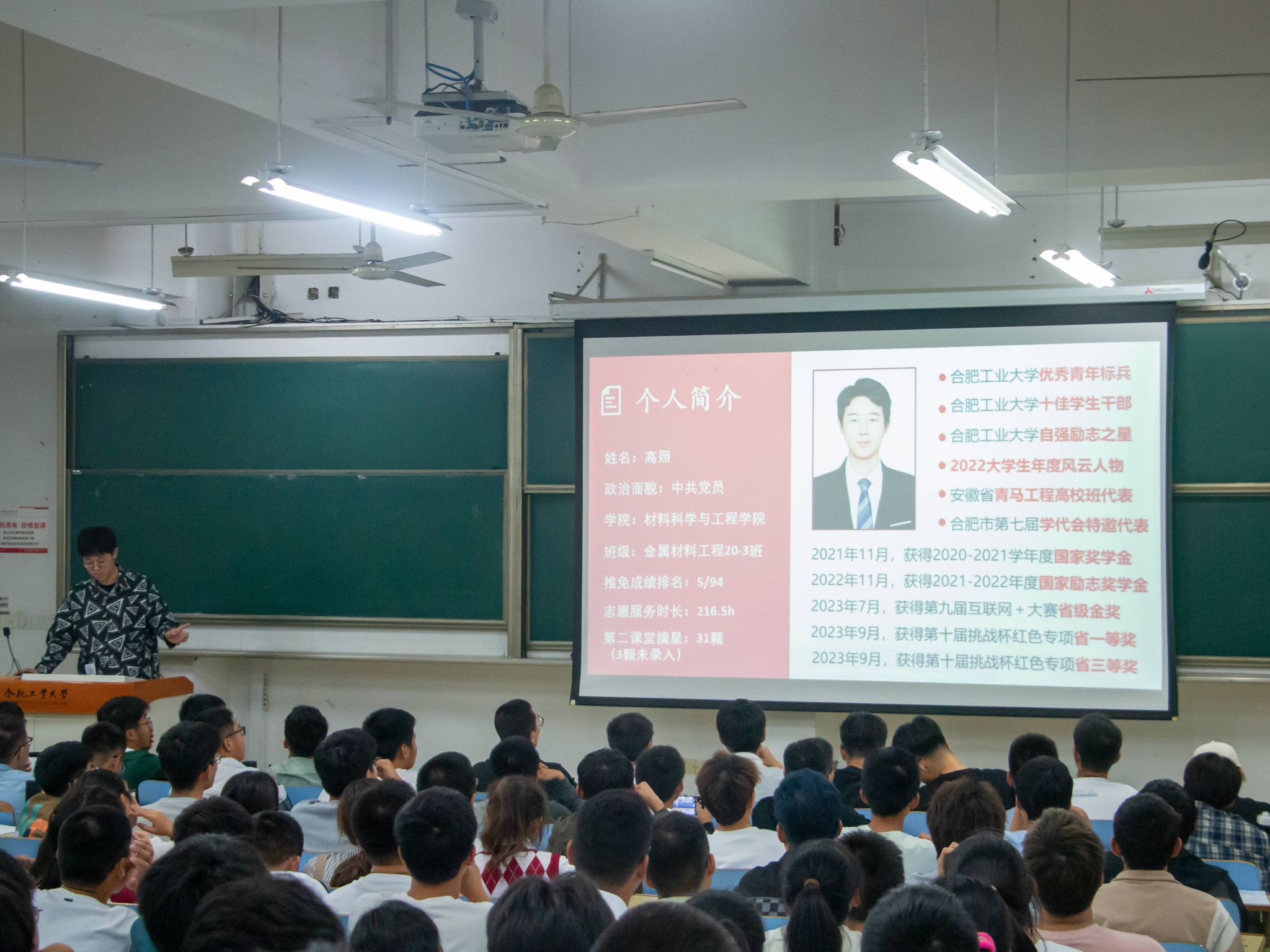 2023级全体本科新生参加宣讲会,辅导员葛海涛担任主讲。