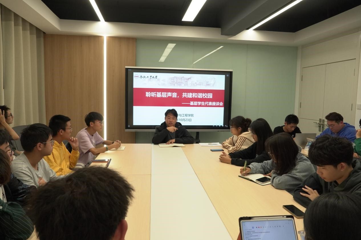 组织学生代表于翡翠湖校区2号楼学生社区举办“聆听基层声音,共建和谐校园”学生代表座谈会。学院辅导员、各团学组织负责人及各班学生代表参会。