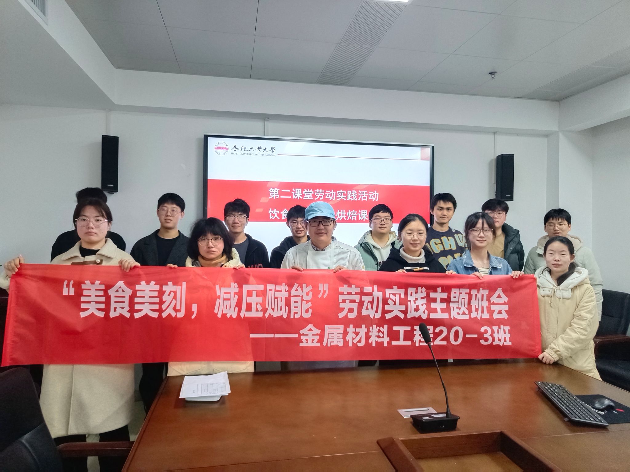 联合总务部饮食服务中心在屯溪路校区饮食新大楼404会议室、西点加工间组织开展了“美食美刻,减压赋能”劳动实践主题班会。学院金属材料工程2020级3班团支部学生代表参加本次活动。