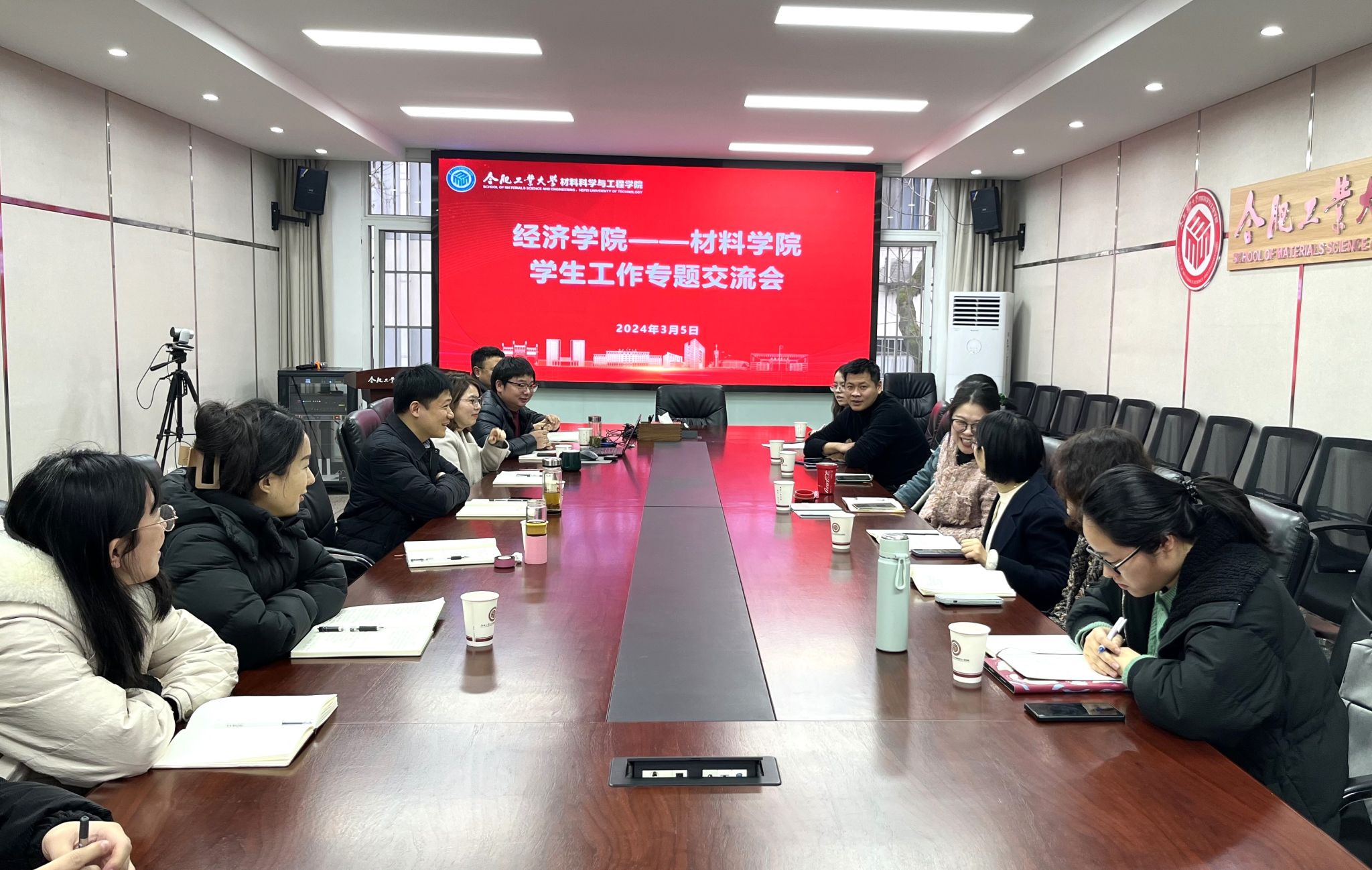 党委副书记兼纪委书记朱峰对经济学院学工团队一行到访表示热烈欢迎,对于兄弟学院给予学院学生工作的大力支持表达了感谢。朱峰从学生工作总体思路、各模块工作理念和下一步工作举措等方面系统介绍了学院学生工作总体情况。学院全体辅导员分别围绕党建和思想政治教育、学生日常事务管理、资助工作、心理健康教育、征兵入伍、新媒体等模块工作介绍了具体做法。学院安徽省样板支部、本科生第二党支部书记马贤峰详细介绍了样板支部创建做法。