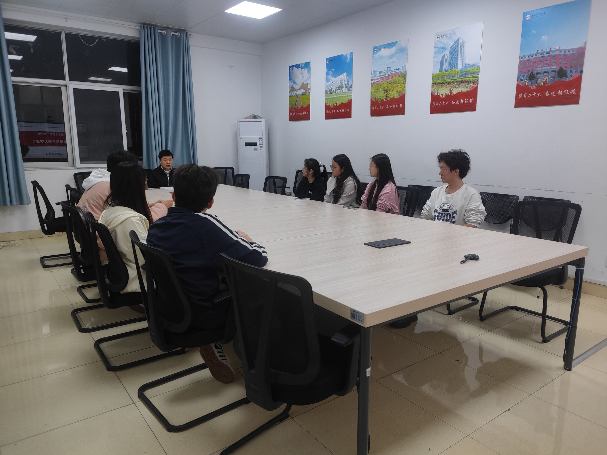 召开了团学组织负责人交流会,学院党委副书记朱峰到场指导。