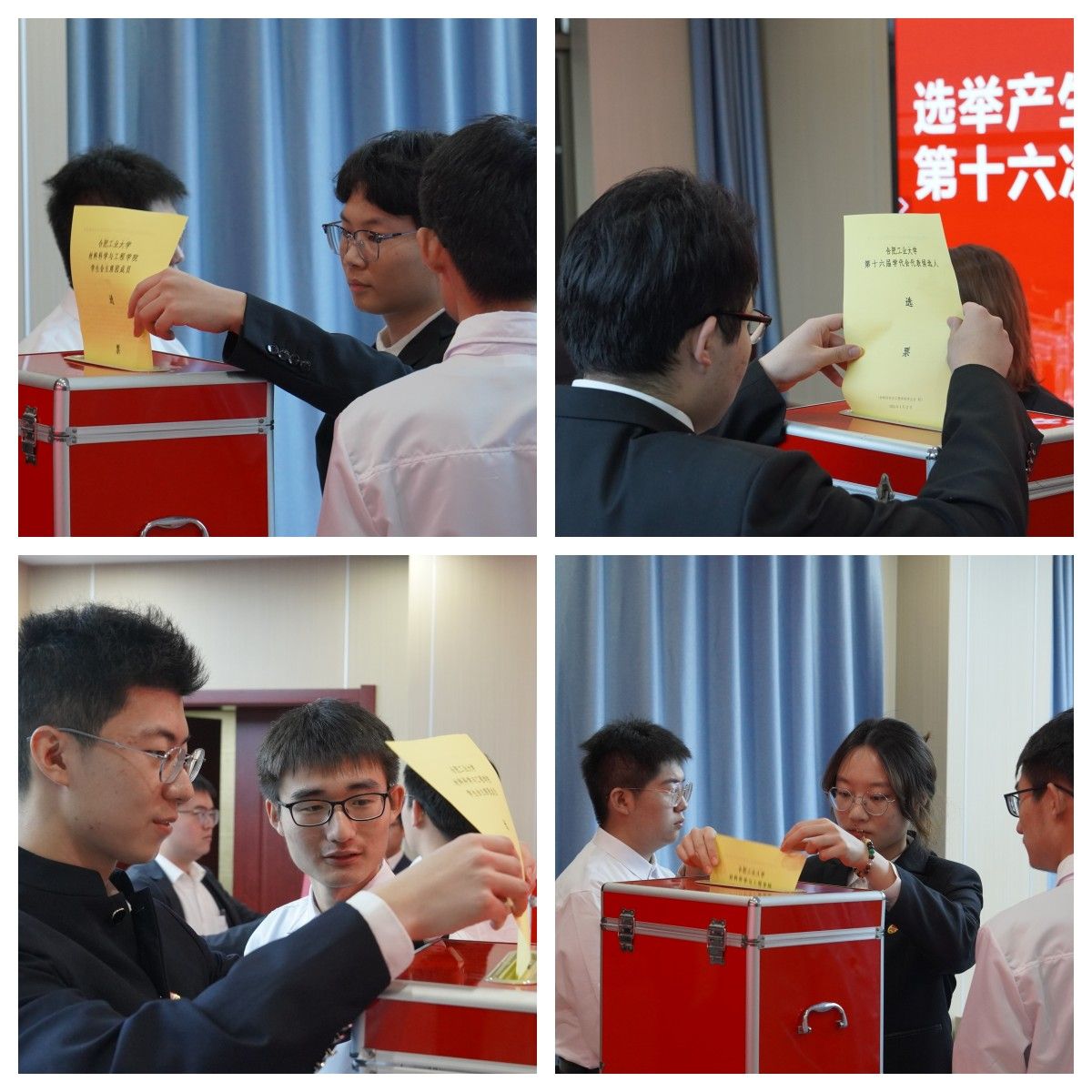 第十六次学生代表大会和暨第六次研究生代表大会学院的11名本科生代表和6名研究生代表,由学院学工办副主任兼团委副书记马贤峰老师宣读选举结果。