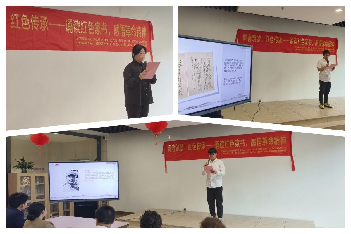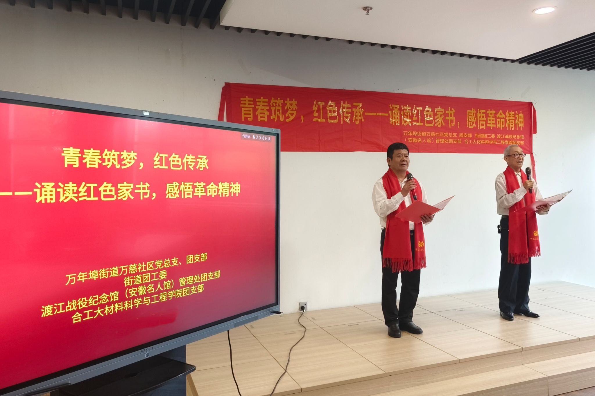 联合万年埠街道团工委、渡江战役纪念馆(安徽名人馆)团支部、万慈社区共同开展红色家书诵读活动,学院分党校71期预备党员班学员参加活动。