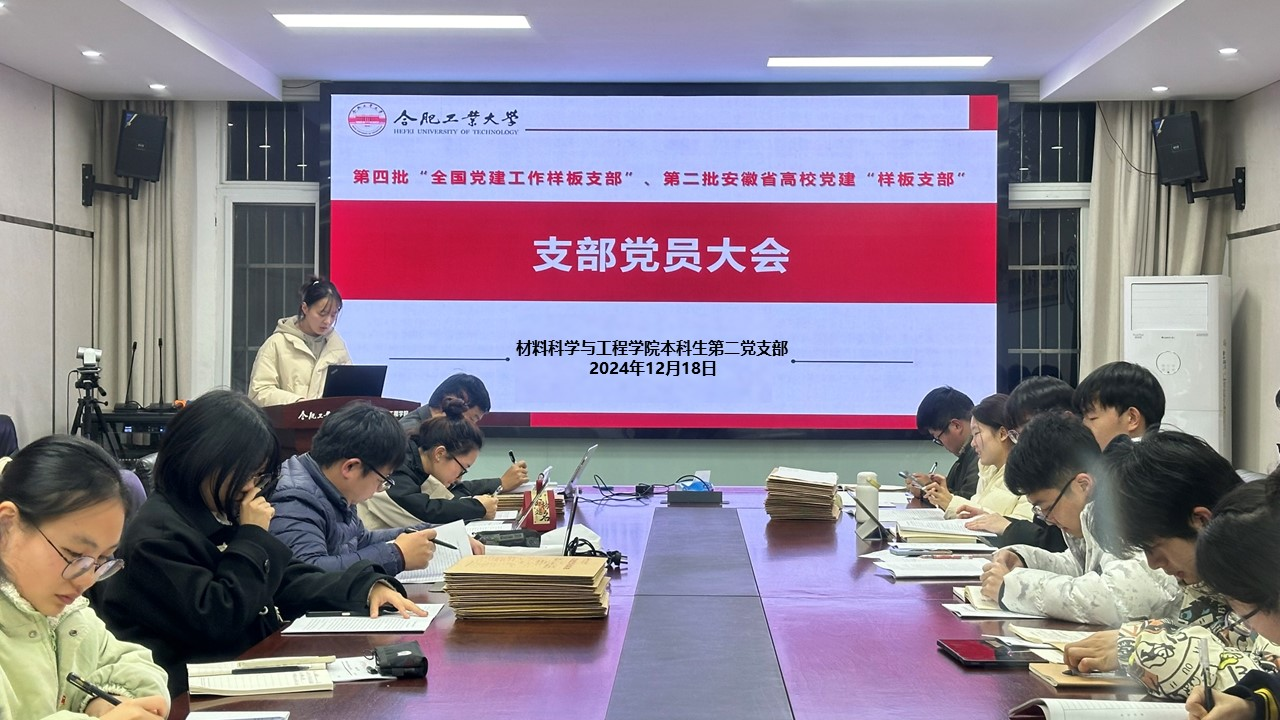 本科生第二党支部在屯溪路校区小红楼210召开了2024年下半年预备党员转正支部大会暨“材料强国”(第一期)专题政治理论学习。大会由党支部副书记程振洋主持,支部全体党员30余人参会。