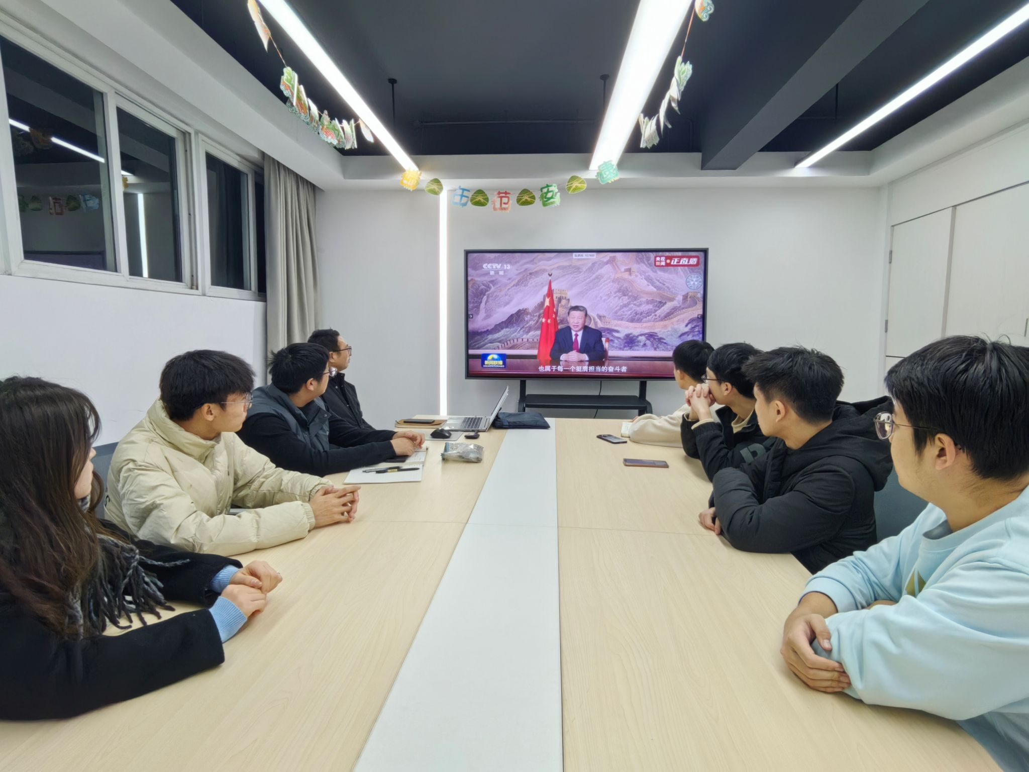于四号楼学生社区会议室组织观看习近平总书记2025年《新年贺词》,学院2023级辅导员、2024年全体新发展党员和新发展团员30余人参与了本次活动。
