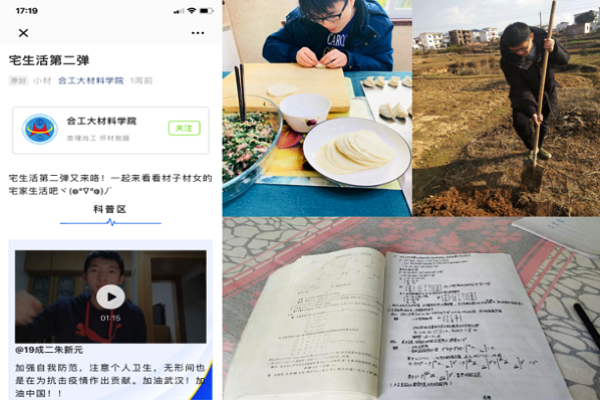 言传身教,知行合一,做好非常时期的思想引领。自新型冠状病毒感染的肺炎疫情发生以来,学院辅导员们充分调动党支部、团支部的力量,利用学习强国、网上直播、QQ直播、QQ群等平台,及时传达习近平总书记对当前新型冠状病毒感染肺炎防控工作作出的一系列重要指示精神,以及教育部、安徽省和学校关于疫情防控的政策以及工作要求,积极关注疫情防控进展,保证了学习不断线,进一步增强了疫情期间党团组织的思想引领作用。部分青年积极响应号召,充分发挥“一个支部就是一个堡垒,一名党员就是一面旗帜”的战斗堡垒和先锋模范作用,积极投身志愿服务,冲锋在疫情防控第一线,让党旗、团旗在防控疫情斗争第一线高高飘扬!材料物理2018-1班学生党员周霆宇、材料成型及控制工程17-1班学生党员杜黎明、材料类19-6班团员贺景浩、材料类19-4班钱璟,积极参与到社区防疫工作中;2019级材料类专业积极组织线上零星捐款,其中材料类19-3班何展辉个人捐款1100元。志愿者们均表示危难当头,愿意贡献自己的绵薄之力,同祖国共渡难关。