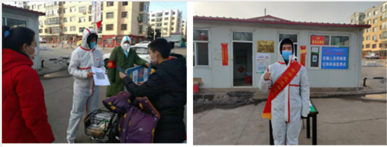 为了有效落实疫情防控工作,陕西省渭南市大荔县城关镇北环路文殊小区组建了临时党支部,支部积极开展社区疫情防控工作。学生党员杜黎明积极报名参加了当地疫情防控监测点的值班工作;自1月27日起,他开始了每天2小时值班工作,他的工作内容主要是对出入的人员进行登记、检测体温,对出入的车辆进行登记并喷洒消毒;平凡普通的疫情防控工作让他感到无比的自豪和骄傲,每当有人问起“小杜,你也怎么也参加值班了?”他自信的说道:“我是共产党员,主动担当作为是我应该做的。”