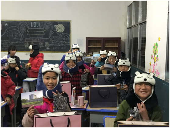 全体在校生开展主题募捐,募捐资金用于资助位于贵州省黔东南自治州丹寨县扬武镇长青村丹寨县长青第二小学的孩子们。为期5天的募捐活动,共有36名学生党员参与,共筹集善款1282元。本科生第二党支部学生党员利用募捐的资金为长青二小五(2)班36名同学购买了过冬的棉帽和棉袜,并以写明信片的方式为每一位小朋友送去了祝福。