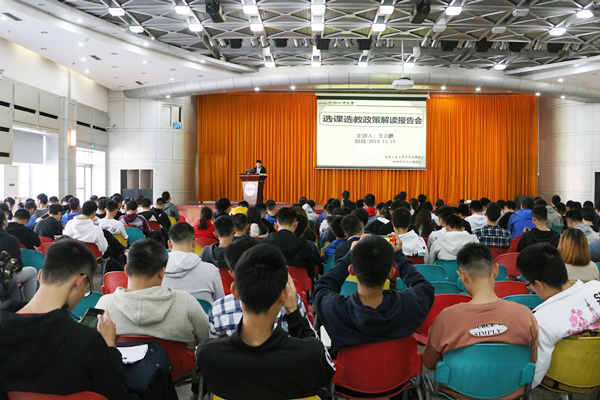11月13日下午,在翡翠湖校区综合楼301宣讲厅,注册中心王云鹏老师分别从选课选教重要性、时间节点、注意事项四个方面描述了同学们选课过程中要在了解本专业的指导性教学计划的前提下结合专业、兴趣、时间地点等完成选课,同学们积极参与互动,提出问题,王老师作了一一解答。此次报告会向学生介绍选课机制的同时,增强了学生在教学活动中的参与意识,激励学生合理安排时间发展兴趣,在学校资源允许的前提下,自主安排学习时间,为进一步推进禁漫天堂