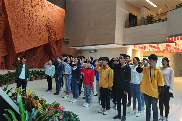 “对党忠诚,为共产主义奋斗终身!”在学员班班长陈志浩的领誓下,全体学生党员在展馆内再一次面对鲜艳的中国共产党党旗进行了庄严宣誓仪式,重温了入党誓词。