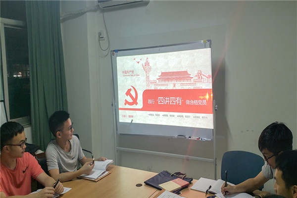 交流讨论环节,大家结合党课理论学习内容及自身体会,畅所欲言。唐天宇同志说:“通过今晚的对标“四讲四有”学习讨论,才发现自己在“讲规矩、有纪律”方面还有待提升,自我意志力不够坚定,对部分课程态度不够端正,自己也有所松懈,希望自己在这方面能改进,同时请大家监督自己。”;谢文珍同志说:“本人在’讲奉献、有作为’方面,缺少魄力,没有坚定的信念去很好的完成事件。做事一有松懈的念头,之后就很难再去好好的处理下去。今日事今日毕,不能放松对自己的要求,以后将积极改正。“