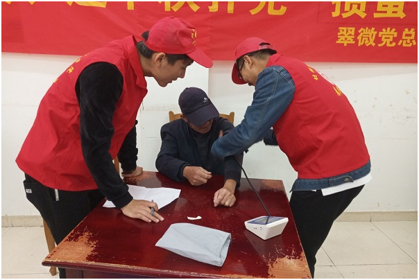 活动当天,志愿者们与社区工作人员进行简单的对接后,在社区工作人员的带领下,他们一行来到了空巢老人的家里。社区工作人员耐心的向老人介绍了志愿者们的来意。随后,志愿者们进行了分工协作,有的帮助老人打扫卫生,有的陪同老人聊天,有的帮助老人量血压。他们将前期了解的养生健康知识向老人做了宣讲,对于血压测定结果,他们耐心的向老人做出了许许多多的建议。在聊天过程中黄鲁逸老人讲到:“他和自己的老伴都是部队老兵,儿子大学毕业已步入工作岗位,由于工作原因能够看望自己的机会并不多,因此家里面有时候会显得很冷清,看到这么多的孩子来到家里表示很开心,希望能够有更多的志愿服务活动能够进入社区。”