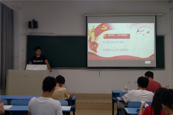 会上,姚尚辉同学带领大家学习了《共产党宣言》,从《共产党宣言》的由来、无产者与共产党人的定义、共产主义革命的最终目标三个方面向同学展开介绍。紧接着同学们就“什么是共产主义?”“为什么要信仰共产主义?”“如何把共产主义信仰作为自己一生的追求?”这三个问题结合自身实际情况相互讨论并发表了自己的看法。