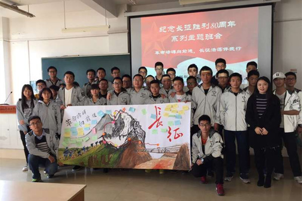 在2016级新生中召开了“纪念长征胜利80周年”系列主题班会,带领同学们认识“长征”、了解“长征”。班会上,同学们积极踊跃发言,大家也分享了自己准备的素材:邱志聪同学通过一则长征中一位医疗队队长为了保护医疗物资英勇牺牲的故事讲述了长征中艰辛和红军战士高度的责任感、使命感。张琛璞同学则通过2016年安徽怀宁水灾中武警官兵紧急救援的故事为大家讲述长征精神在当今社会的体现。
