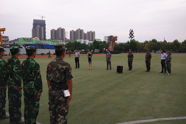 2016级新生军事训练场地东操场,看望参与训练的教官和新生。