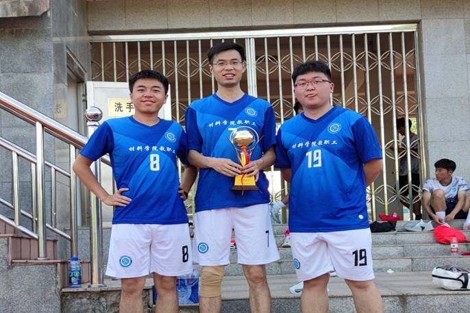 在简短的开幕式后比赛正式开始,头顶晴朗的天空,绿茵场上,师生尽显风采。上半场,2019级足球队攻势猛烈,开局仅5分钟队员马合木提江就首开纪录,随后2019级队员贺景浩再下一城!教职工队不甘落后,沉着应战,由2019级本科辅导员葛海涛老师和无机非金属材料系主任鲁颖炜教授的精彩射门将比分扳平。下半场易边再战,开场不久葛海涛老师梅开二度将比分反超,随后金属材料工程系孙建老师的远射和2019级贺景浩的抬脚将比分锁定在4:3。第一场比赛结束后紧接着进行了2019级和2020级友谊赛。通过激烈的角逐,教职工队获得本次师生足球赛冠军。