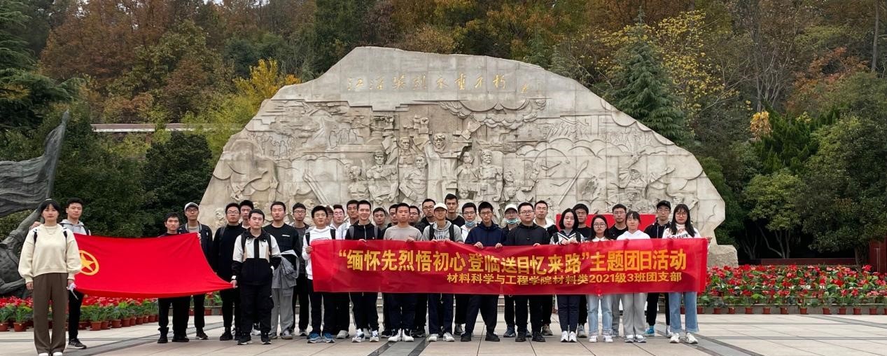 来到蜀山烈士陵园开展“缅怀先烈悟初心,登临送目忆来路”主题团日活动,学院材料类2021级3班全体同学参加活动。
