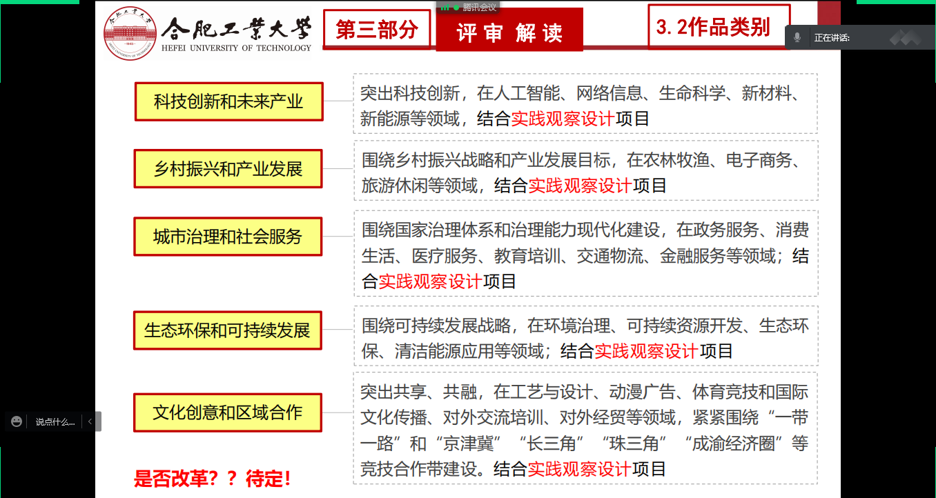 陈曾珍介绍了“挑战杯”的赛史、赛程以及重要意义,并从“通知解读、制度解读、评审解读、项目写作”四个方面,对本年度“挑战杯”中国大学生创业计划竞赛的内容及备赛指南进行了详细说明。陈老师还通过分析往届高质量“竞赛级”作品的特征,对选题技巧、团队管理、项目申报、评审重点以及申报书的撰写技巧等作了精彩解读,对同学们提出的问题作出了详细解答。陈老师鼓励同学们踊跃参赛,积极备赛,通过赛事不断挑战自己,超越自我,提高个人创新创业意识,强化个人综合素养。