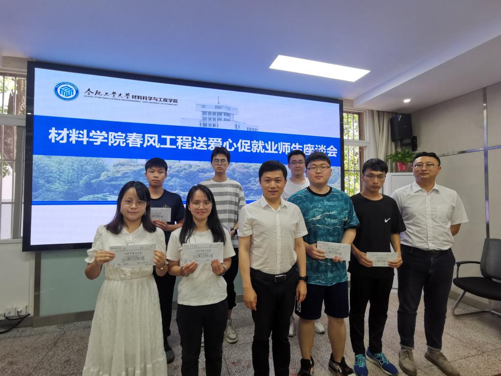 于屯溪路校区小红楼210会议室举办了春风工程送爱心促就业师生座谈会。学院相关领导老师、部分受补助学生代表参与本次座谈会。