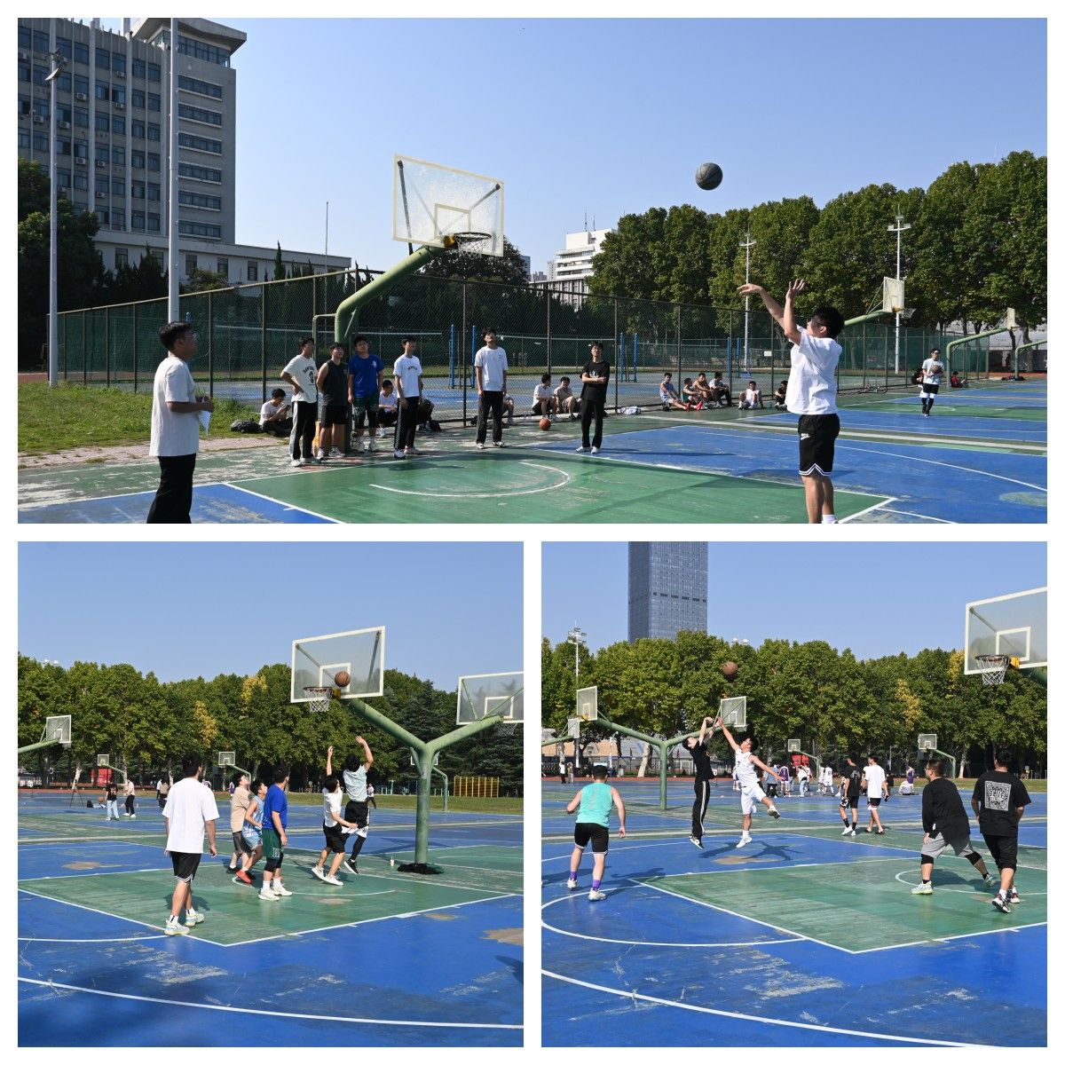 3v3淘汰赛之后的三分球大赛、定点投以及3v3总决赛环节更是精彩万分,气氛热烈。一颗颗篮球,在空中划出漂亮的弧线,像是秋日晴空所赠的唯美星轨;汗珠,在奔跑之中滴落绽放,如热烈的夏花,闪烁着青春的活力与奋进的生命。