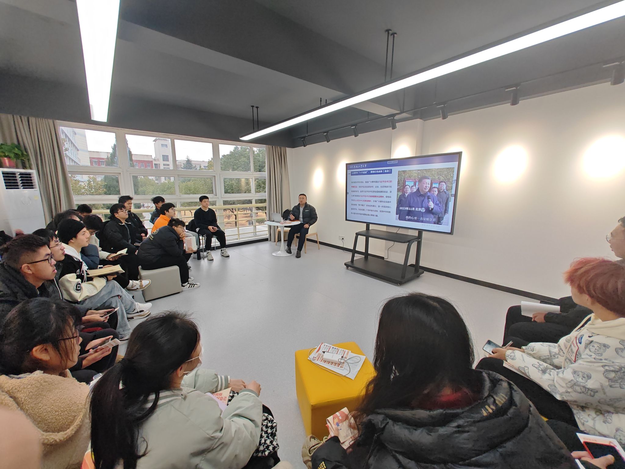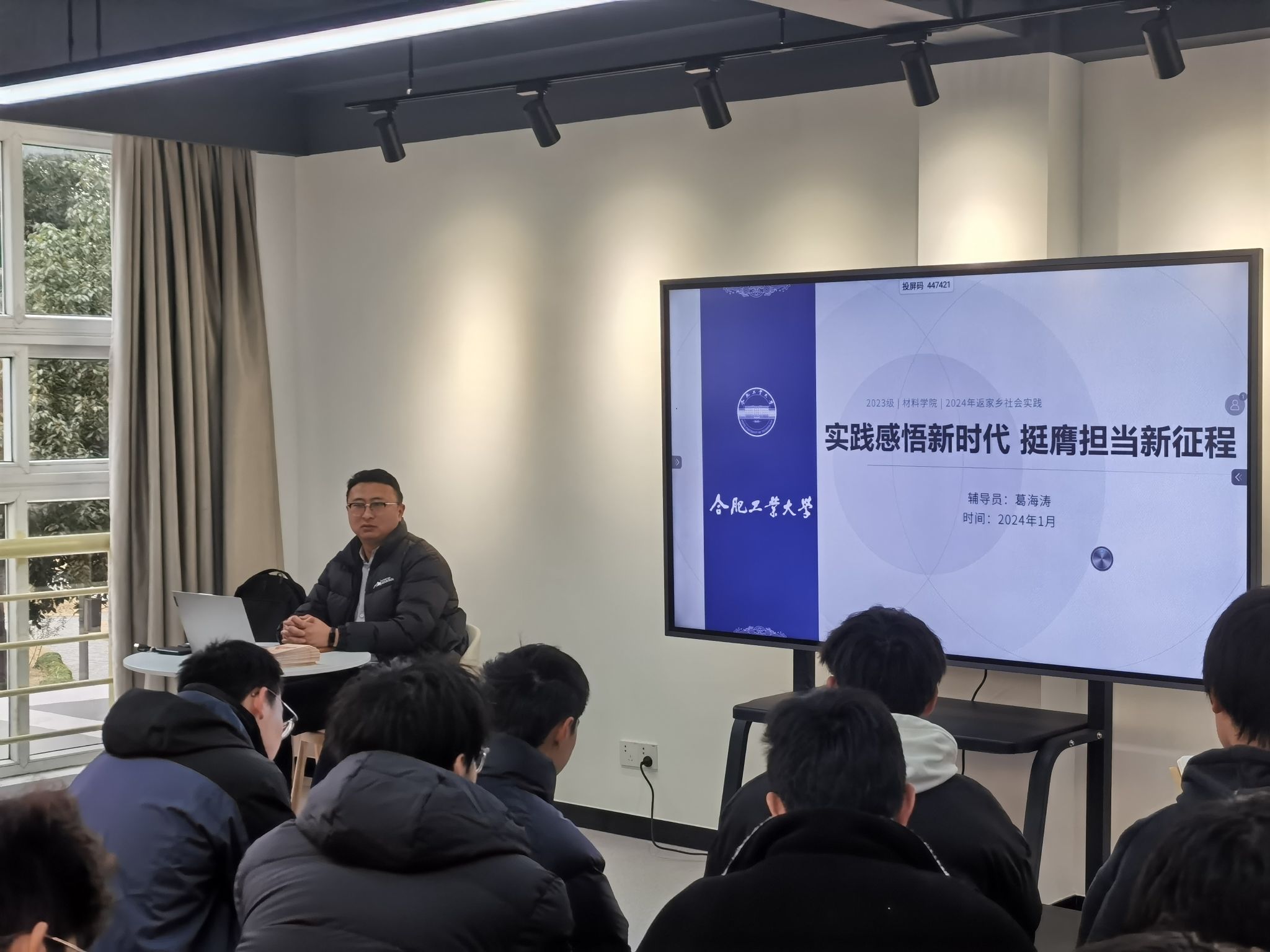 组织2023级学生于翡翠湖校区四号楼沙龙空间逐个班级全覆盖召开“实践感悟新时代,挺鹰担当新征程”2024年寒假离校学生离校教育工作主题班会。