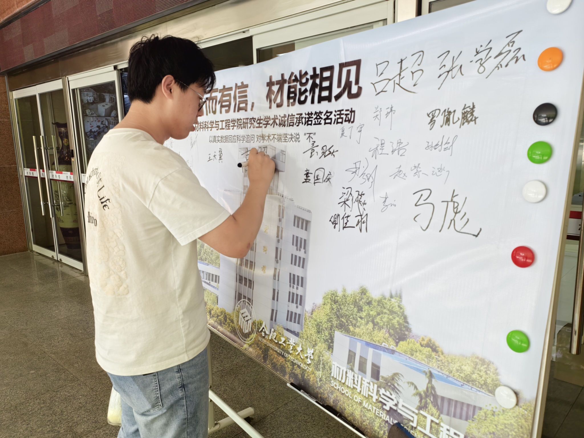 于4月25日上午,在材料楼举办“研而有信,材能相见”学术诚信主题教育活动,活动通过宣誓签名、案例警示、互动问答等形式,吸引了80余名研究生参与。