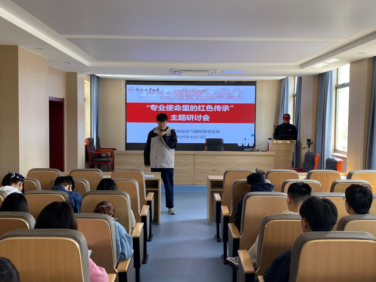 第73期预备党员班分校区于翡翠湖校区4号宿舍楼学生社区会议室、屯溪路校区材料楼601室开展“专业使命里的红色传承”研讨交流活动,学院73期预备党员班全体学员参与活动。