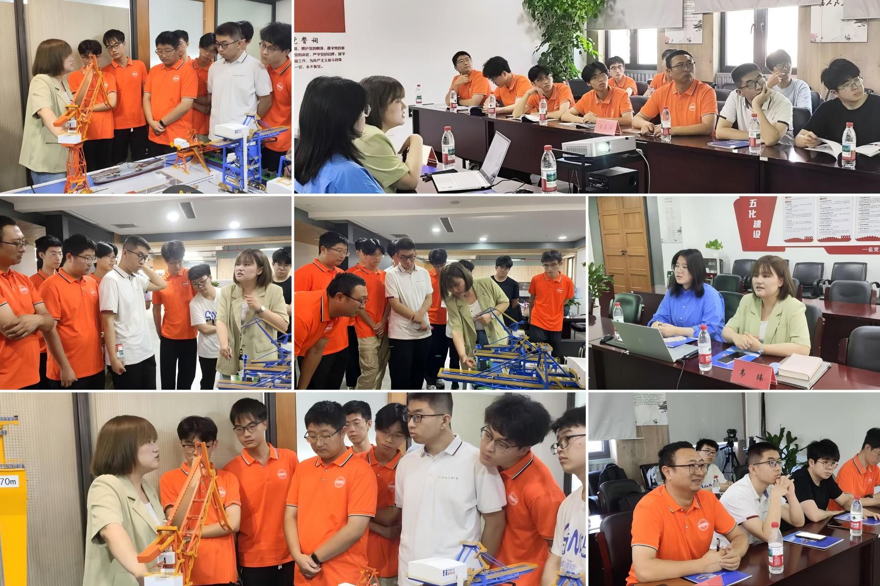 杭州华新机电工程有限公司人事部经理韦玮热情接待团队。她带领团队参观了公司展厅及工作区域,系统介绍了华新机电的发展历程、核心业务领域以及在港口机械行业的重要位置。韦经理详细讲解了这些设备的工作原理、技术特点及应用场景,使队员们深刻感受到高端装备制造的科技魅力与工程价值,也直观认识到材料性能与工艺在提升装备可靠性及效率中的关键作用。