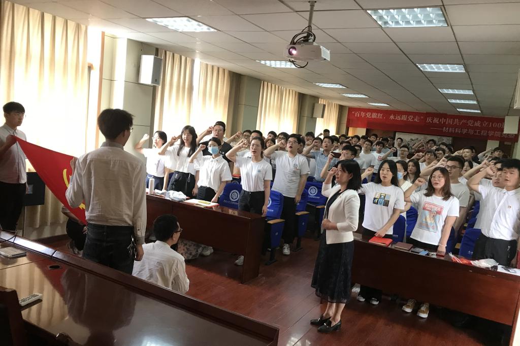 学院党委在601会议室举行入党宣誓仪式,在党委书记吕珺的领誓下,学院全体新入党党员举起右手,在党旗下庄严宣誓,并集体齐唱没有共产党就没有新中国。