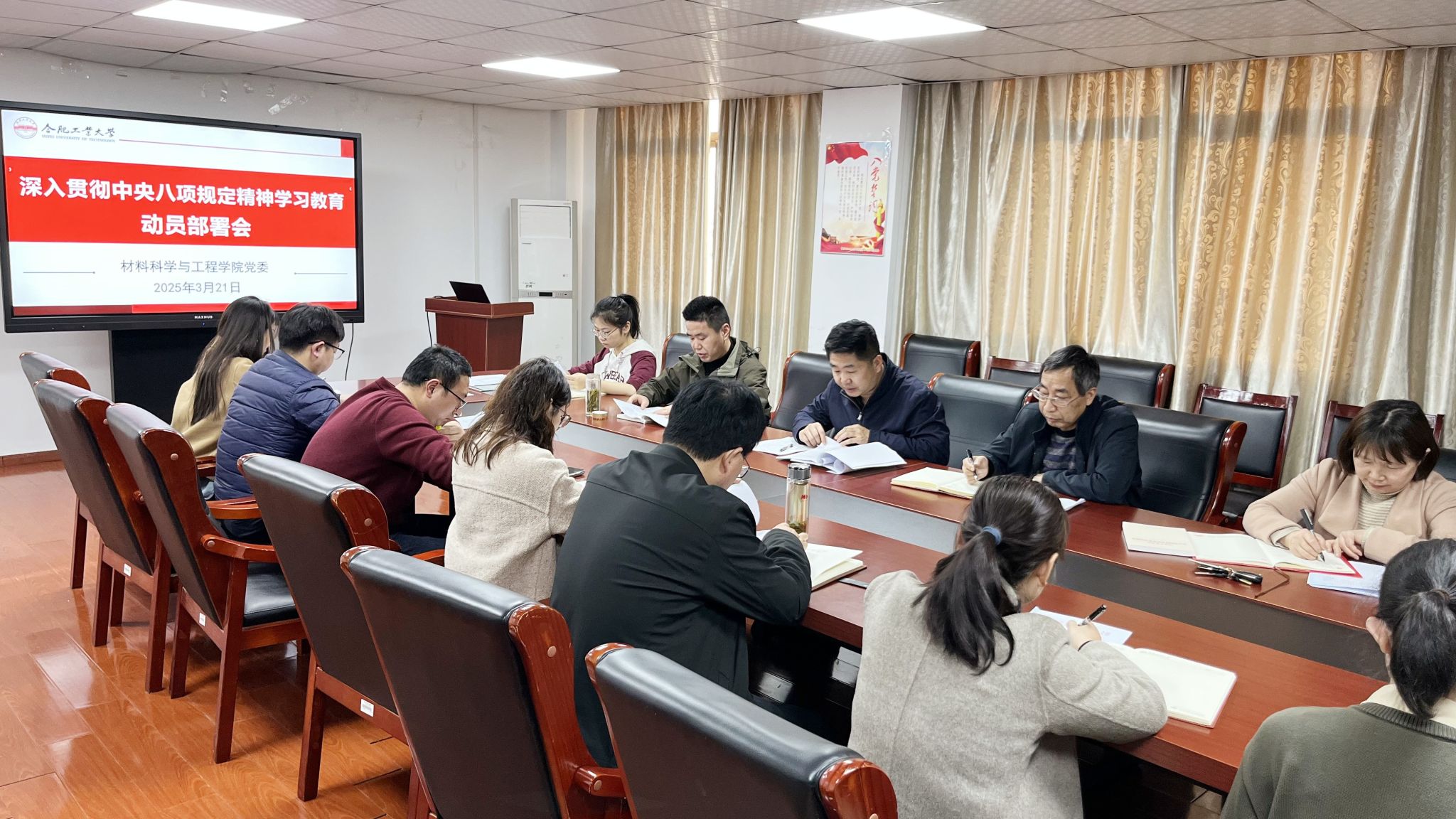 会议传达了学校深入贯彻中央八项规定精神学习教育工作部署会精神。强调各党支部和党员师生要按照学院党委的统一部署要求,抓好学习宣传贯彻工作。一是要提高政治站位,深刻认识开展中央八项规定精神学习教育的重大意义;二是要把握目标要求,扎实落实学习教育各项任务;三是要学做结合,以实的举措确保学习教育成效,以好的作风保障好事业发展,以实际行动向建校八十周年献礼。