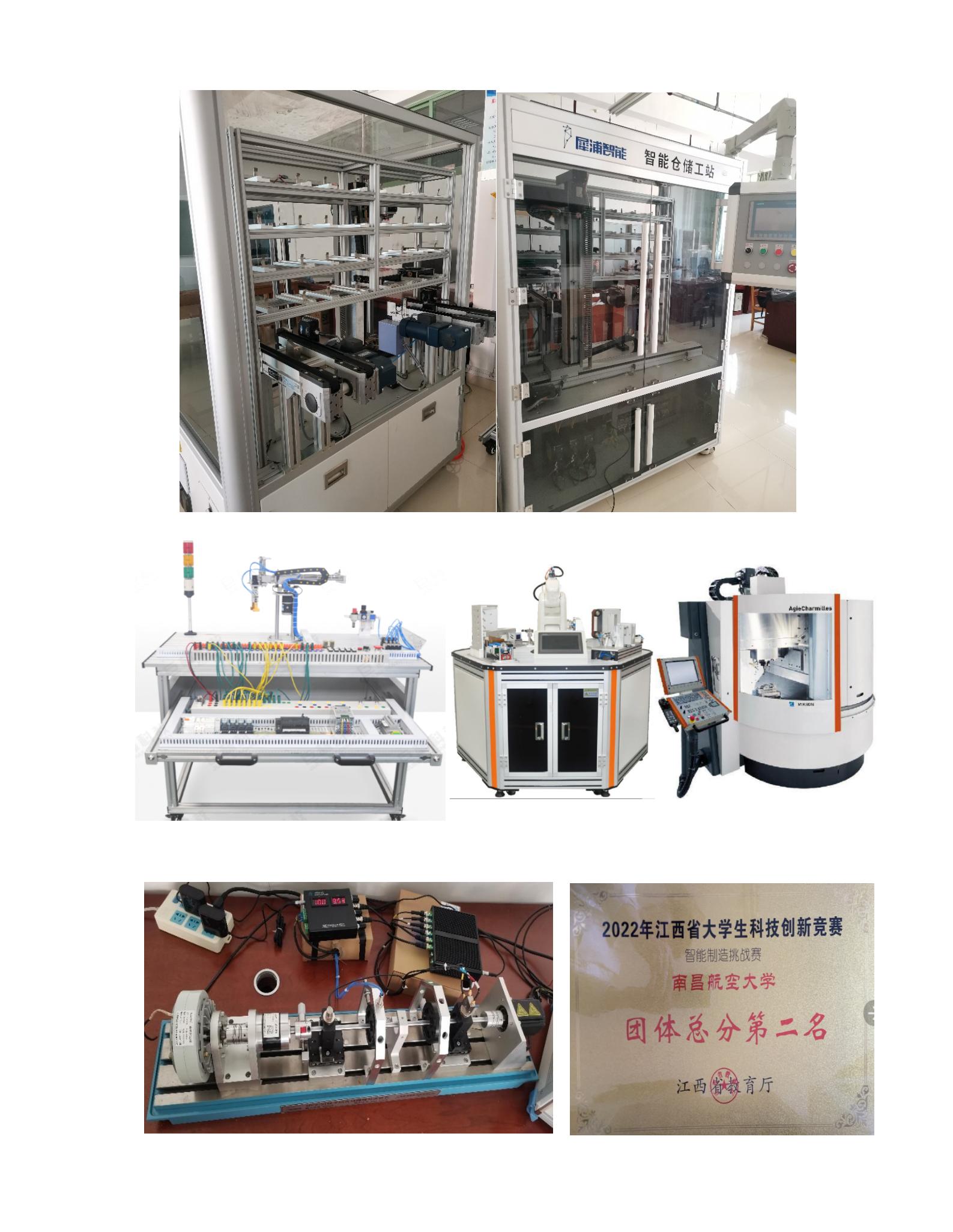 主要实验设备:智能仓储工站、三轴机械手实验台、机器人示教平台、转子试验台。